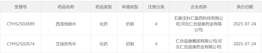 7月24日,仁合益康2款仿制药西洛他唑片、艾瑞昔布片报产获受理。其中,艾瑞昔布片是一款抗炎抗风湿药,2024年在中国三大终端六大市场(统计范围详见本文末)的销售额超过10亿元,目前该药在国内暂无仿制药获批。